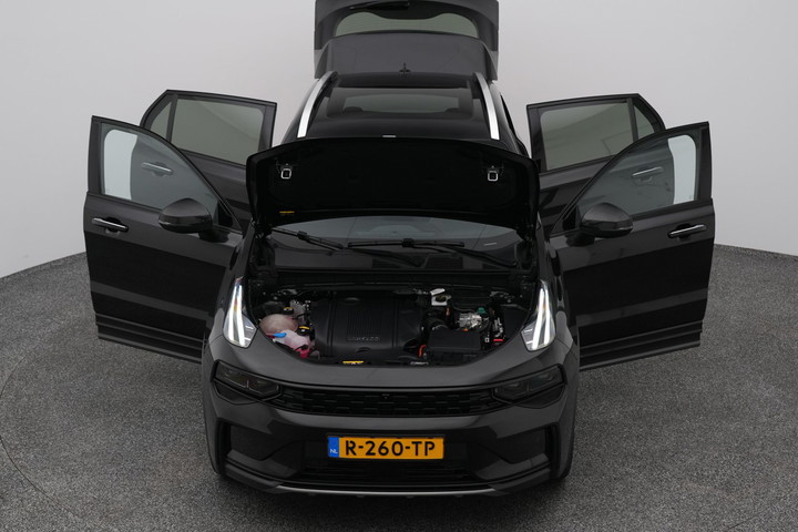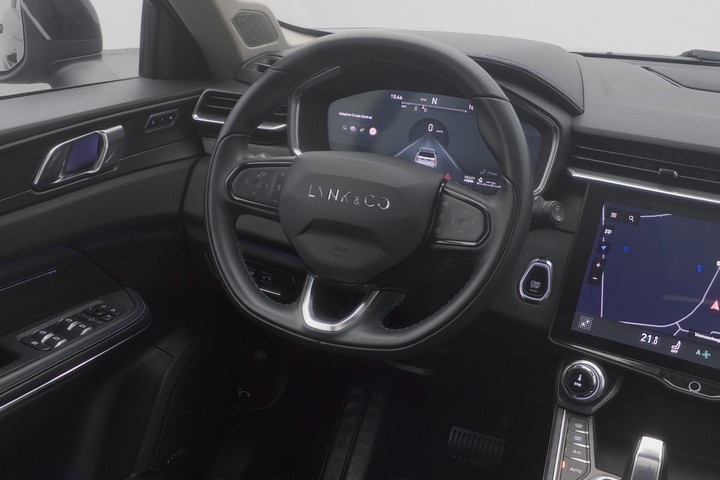 Met het digitale dashboard heeft u essentiële info in beeld. Altijd, overal. Adaptive cruise control houdt de ingestelde snelheid vast en houdt automatisch afstand tot uw voorligger. Loopt het verkeer onderweg vast, schakel dan de file assistent in en laat het systeem zorgen voor de juiste afstand bij stilstaan en rijden. Met spraakbediening of de knoppen op het stuur regelt u het audio-installatiesysteem en het full map navigatiesysteem, terwijl u uw blik op de weg gericht houdt. De audio-installatie biedt daarbij glasheldere ontvangst dankzij DAB-ontvangst. Nooit meer een lege smartphone: de draadloze telefoonlader laadt onderweg bij - zonder snoertjes! Ook is de Lynk & Co uitgerust met: achteropkomend verkeer waarschuwing, automatische airconditioning, parkeersensoren achter, regensensor, keyless entry en automatisch dimmende binnenspiegel.